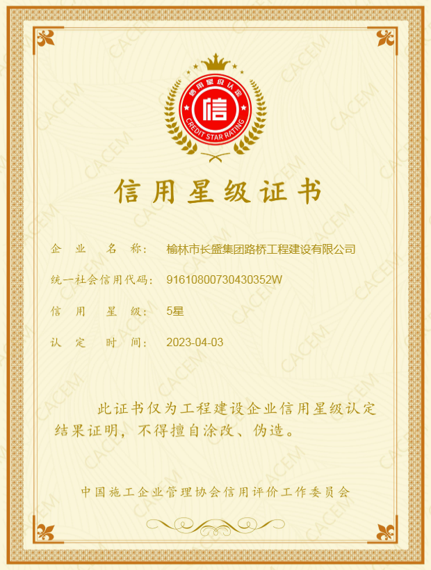 榮譽(yù)|長(zhǎng)盛路橋獲評(píng)全國(guó)工程建設(shè)5星級(jí)信用企業(yè)