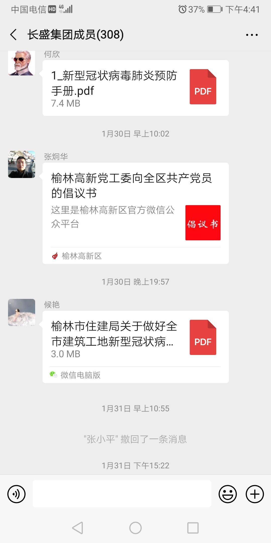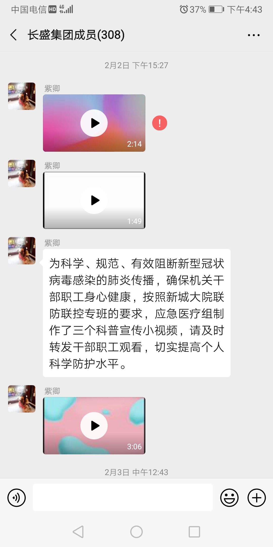 集團(tuán)公司領(lǐng)導(dǎo)通過(guò)微信群發(fā)布新型肺炎防治知識(shí),供員工線上學(xué)習(xí)閱讀,提醒做好個(gè)人防護(hù)工作。