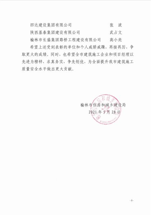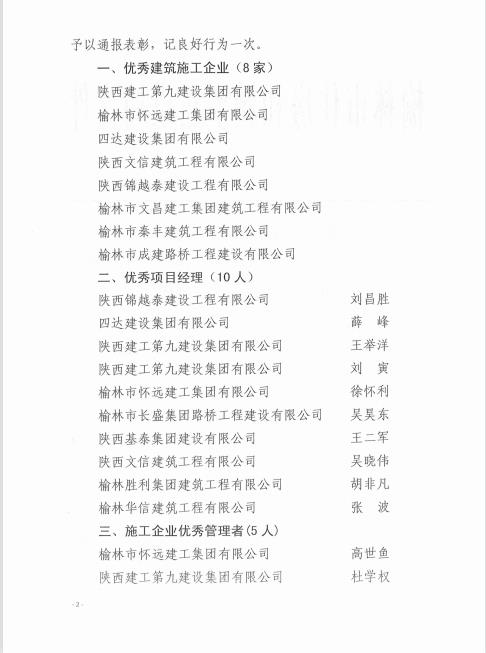 榆林市住房和城鄉(xiāng)建設(shè)局關(guān)于表彰2020年全市優(yōu)秀建筑施工企業(yè)和優(yōu)秀項目經(jīng)理的通報