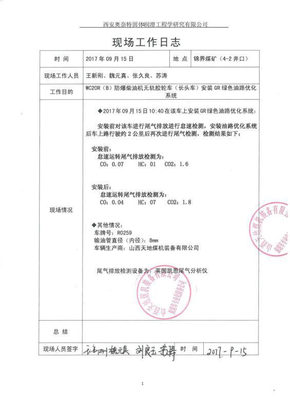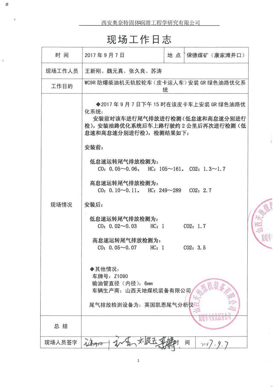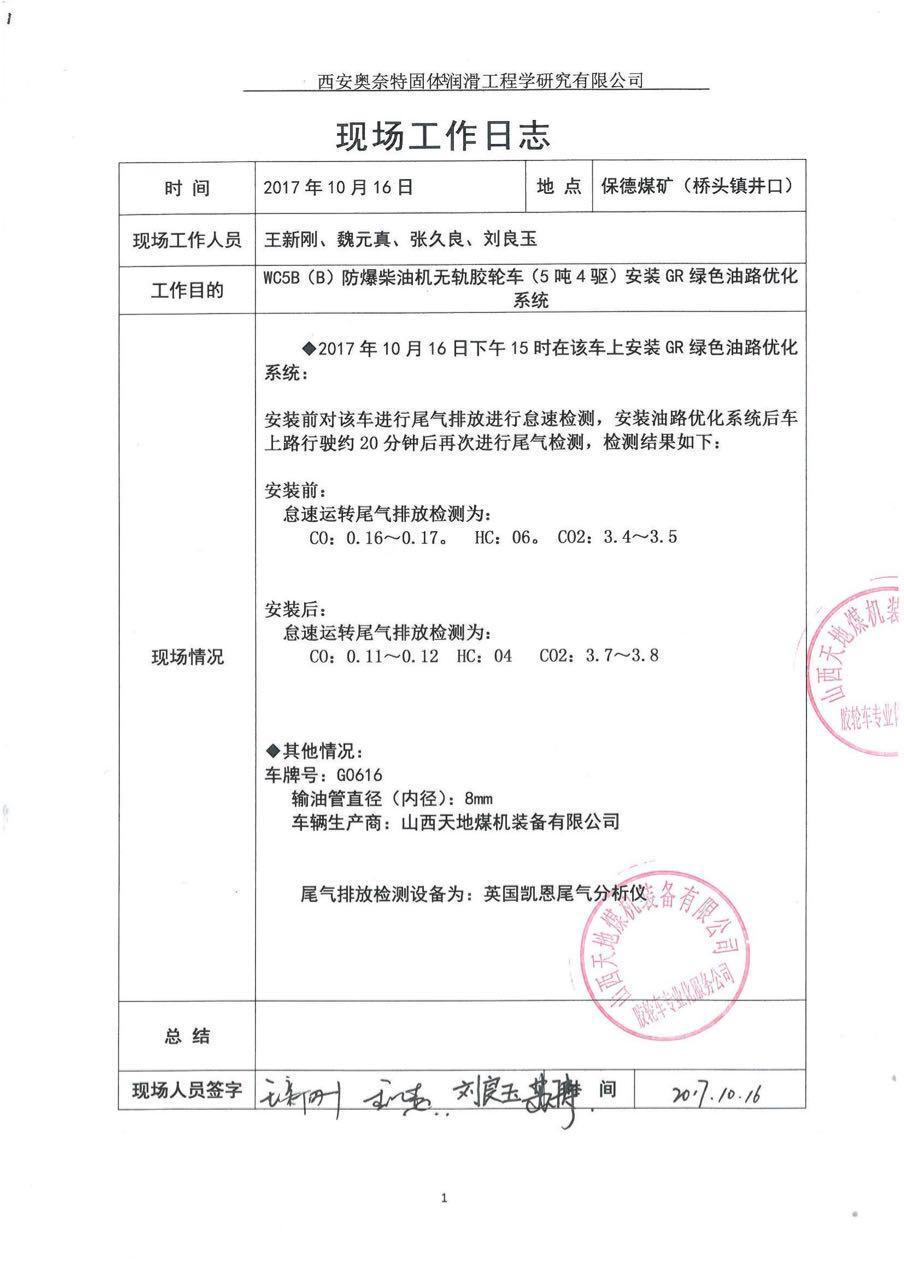 井下車(chē)輛試驗(yàn)報(bào)告、現(xiàn)場(chǎng)工作日志