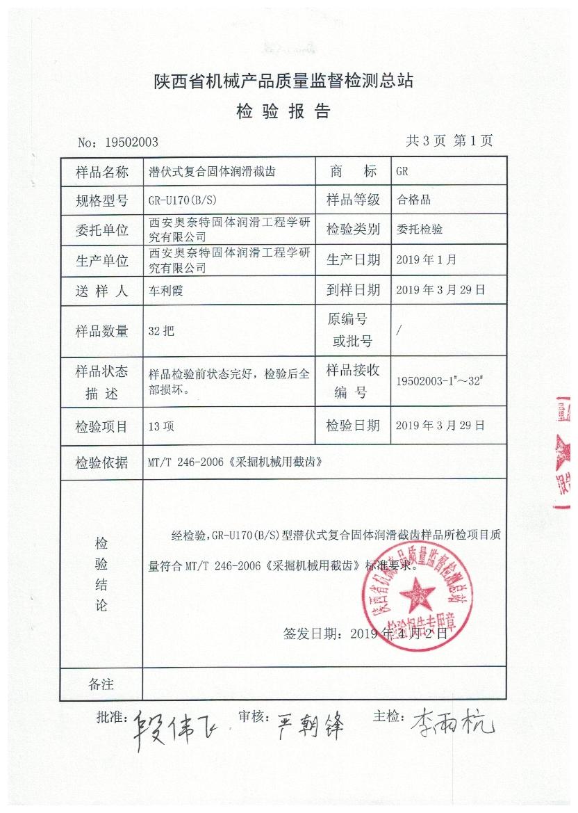 截齒檢驗報告u170