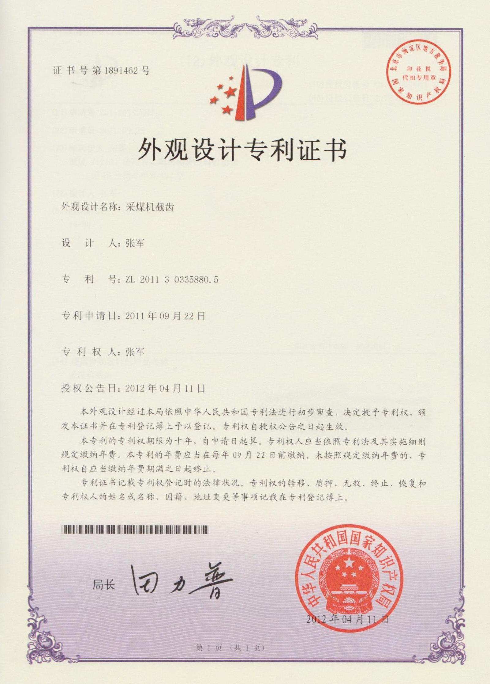 外觀設計:采煤機截齒