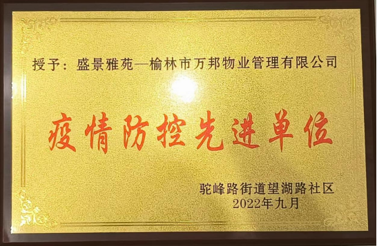 喜訊丨萬邦物業(yè)-盛景雅苑項(xiàng)目被評為“疫情防控先進(jìn)單位”