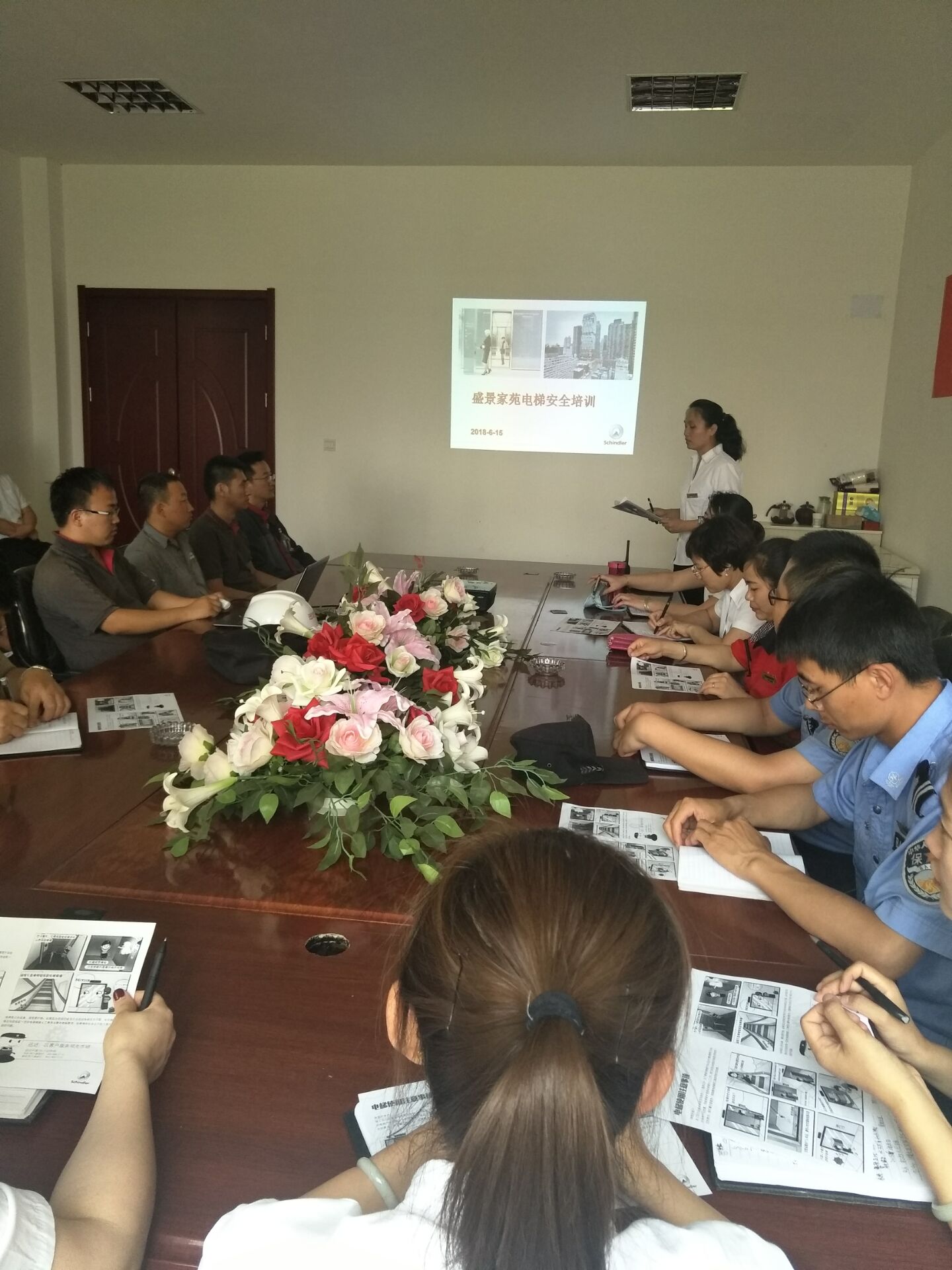 6月份我公司組織員工進(jìn)行了關(guān)于物業(yè)常見問題處理方法相關(guān)法律法規(guī)的運(yùn)用等知識培訓(xùn),以及 “電梯安全知識”培訓(xùn)和演練。 此次電梯演練我們邀請了迅達(dá)(中國)電梯有限公司西安分公司維保工作人員,為我們講解了電梯主要組成部分及其突發(fā)故障的處理技能,并在演練現(xiàn)場指導(dǎo)我們工作中常見問題的處理方法?,F(xiàn)場氣氛熱烈,員工參與積極性高。 |