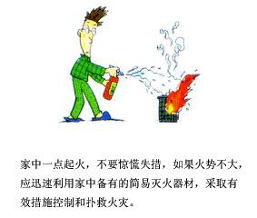 近年來(lái),家庭火災(zāi)發(fā)生率呈上升勢(shì)頭,并且一些火災(zāi)造成了較為嚴(yán)重的人身傷亡事故,給人們的家庭帶來(lái)了嚴(yán)重的精神創(chuàng)傷和沉重的經(jīng)濟(jì)負(fù)擔(dān)。特收集整理一些適用于家庭直觀的、便捷的、有效的滅火常識(shí)和技巧,供大家參考: