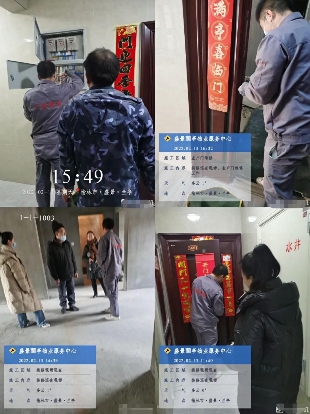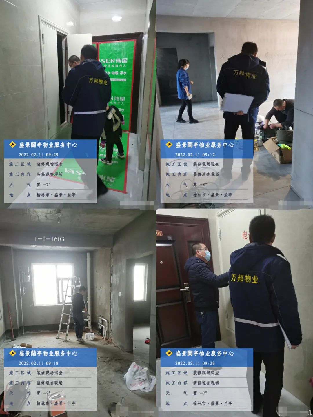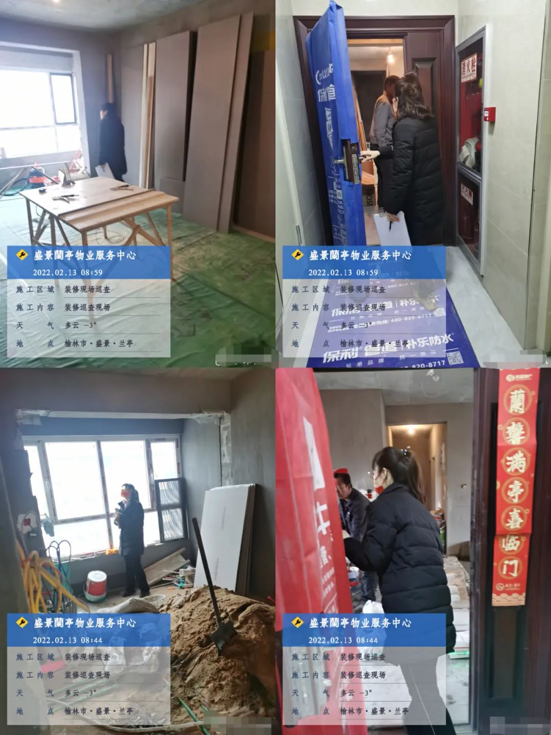 二月萬(wàn)物復(fù)蘇,二月鳥語(yǔ)花香,二月生機(jī)盎然, 這個(gè)二月,我們始終以誠(chéng)相待,用心服務(wù)!在園區(qū)裝修期間,盛景蘭亭服務(wù)中心成立了由工程部、客服部、環(huán)境部、安保部多部門人員組成的裝修特巡隊(duì),集中對(duì)樓棟裝修情況進(jìn)行巡查、管控,整個(gè)小區(qū)裝修工作井然有序。